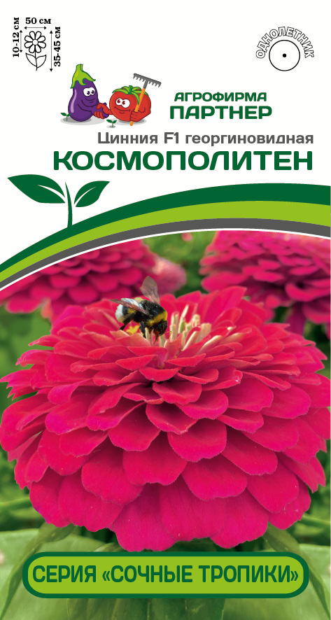 Малиновая окраска цветка выглядит «вкусно», «фруктово - сочно», но не ослепительно ярко, приобретая, по мере роспуска, более пастельный оттенок. Очень крупные, до 12 см в диаметре, цветки редко появляются по одному, чаще всего - это целый букет! Одновременно на растении может быть раскрыто более десятка цветков, которые долго держат форму и не выгорают на солнце. Генетически компактные кусты, до 50 см в диаметре, все как на подбор — выравненные, с хорошим ветвлением и устойчивыми цветоносами. Серия «Сочные тропики» отличается ранним, продолжительным цветением, неприхотливостью в уходе, а крепкое здоровье растений позволяет противостоять неблагоприятным погодным условиям и быть высокоустойчивыми к комплексу заболеваний, в том числе и к серой гнили (Botrytis). Это поистине удивительная серия для любого садового интерьера: ландшафтного, балконного или контейнерного декора в любимом патио-дворике. Чтобы цинния полностью раскрыла свой потенциал, рекомендуем объем кашпо 8-10 л на одно растение и схему посадки в грунте – 35х35 см.