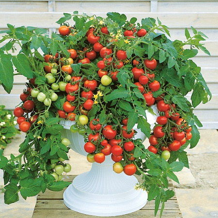 Детерминантный гибрид. Яркие красные грозди этих вкусных плодов – настоящий подарок любителям балконного земледелия. За свои старания Вы будете вознаграждены богатым урожаем, - планируйте получить 2-3 кг с одного куста.