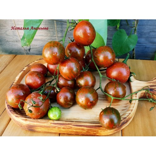 Сорт итальянского происхождения. Высокорослые растения, с высокой производительностью на протяжении всего сезона. Завязываемость плодов отличная, кисти полные, длинные, содержат до 20 плодов. Томаты хорошей плотности, круглые, весом около 30 грамм, цвет пурпурно-коричневый с росписью. Вкус богатый, насыщенный, интересный, сладкий.