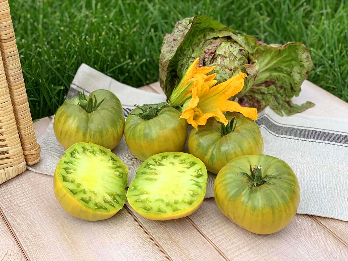 Наше фисташковое обращение к эстетам. Хоть на сегодняшний день зелеными томатами сильно не удивишь, мы все же попробуем, ведь Фисташковый великан - это сладкие, ароматные помидоры, которые хочется выращивать снова. Плоды зеленые с легким розовым румянцем у основания. Свой цвет сорт получает из-за большого количества хлорофилла, который обладает свойствами, близкими к гемоглобину – повышает уровень кислорода в крови и укрепляет клетки. Зеленые томаты показаны тем, у кого есть аллергические реакции на антоциан и ликопин. Кроме того, они меньше подвержены грибковым заболеваниям. Сорт среднеспелый, индетерминантный. Уход обычный, как для красных сортов. Формируем в 3 стебля.