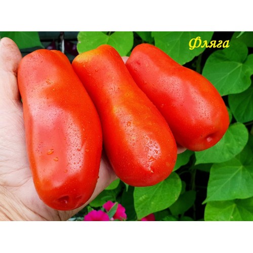 Удивительная новинка сезона! Мимо не пройдешь! Высокорослый, продуктивный сорт. Урожайный с длительным периодом плодоношения. Плоды огромные (сравню с бутылочкой для детского питания), красные, весом 200-400 грамм. Мякоть плотная, малосемянная, розовая маслянистая, очень сладкая. Завязываемость плодов хорошая, вершинной гнили не было. Супер!