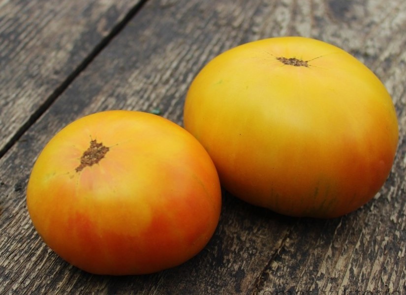 Помидорки приплюснутые, лимонного цвета, кожица очень тонкая