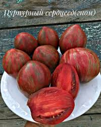 Новинка от Винса Лавалло, результат скрещивания сортов Гном Дикий Фред и Черное сердце Брэда. Высота до 1м, среднеспелый. Плоды очень красивые, сердцевидные, пурпурные с оливковыми разводами, сочные, мясистые, с бордово-малиновой мякотью и хорошо сбалансированным вкусом, весом 120-250г. Высокоурожайный сорт с длительным периодом плодоношения.