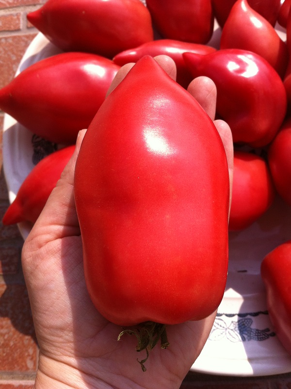 Корейский длинноплодный высокорослый, среднеспелый сорт, плоды малиновые, мясистые, сладкие, удлиненно-цилиндрической формы с изящно загнутым носиком, массой 150-200 гр.
