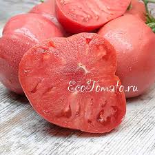 Огромные сердцевидные плоды глубокого розового цвета, имеют богатый сладкий вкус, очень мясистые и в то же время сочные, малосемянные. Вес плодов колеблется от 300 до 500 грамм. Урожайный сорт, хорошо вяжет плоды на жаре. Растение индетерминантные, очень мощное. 75-80 дней.