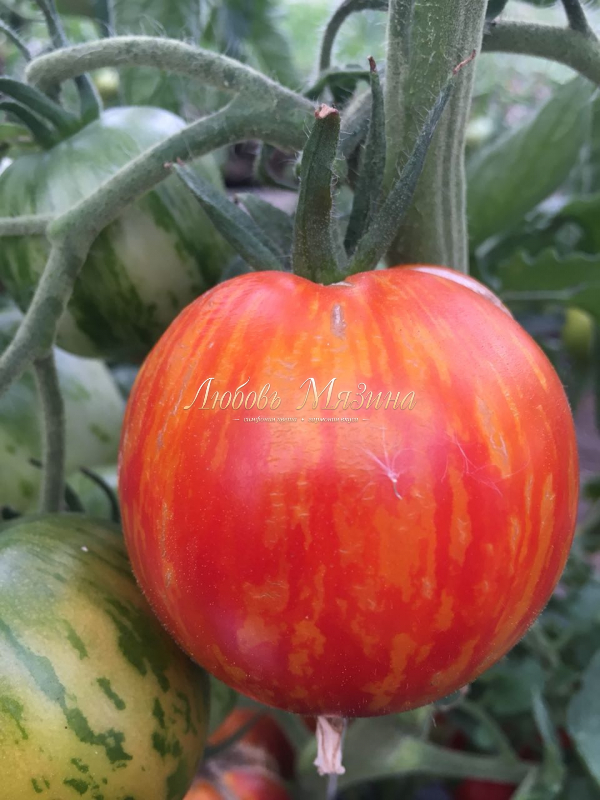 Плоды некрупные, плотные, г 150, зато нарядные: на алом фоне разбросаны жёлтые полосы.