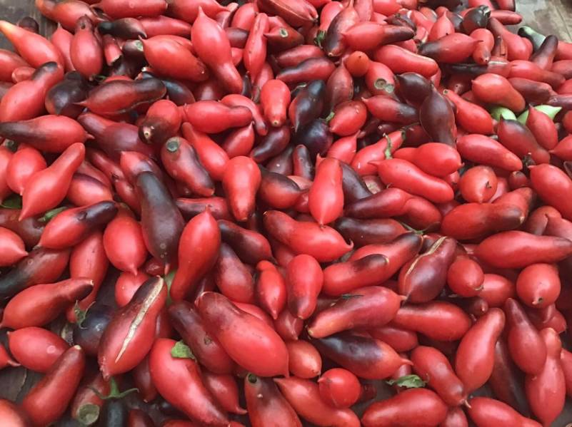 Помидоры очень красивые, удлиненные грушевидные, с тонкой шейкой и широким основанием, оканчивающиеся очаровательным тонким изогнутым носиком, до 20 грамм. Растут удлиненными многоцветковыми кистями в 20-30 завязей. Цвет розовый с фиолетовым антоцианом. Мякоть сочная, мясистая, плотная и хрустящая. Кожица прочная. Вкус помидора великолепный, сладкий, пряный, фруктовый. Обязательно дайте им подольше повисеть на кусте и напитаться солнцем, тогда вкус раскроется максимально. Для свежего потребления и цельноплодного консервирования. Хорошо лежит без потери качества и вкуса.