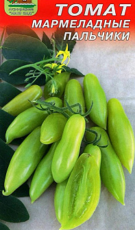 Среднеранний, 80 - 105 дней . Индетерминантный . Растение компактное, около 2 м. Формирует кисти несущие на себе пару десятков плодов. Плоды красивые, зеленые, пальчиковые, заострённые или с коготками на кончиках, около 5 см, массой около 20 г. Вкус яркий томатный, потрясающий мармелад. Когда созревает сильно, превращается в гель, который просто тает во рту… Шедевр вкусовых ощущений!!!