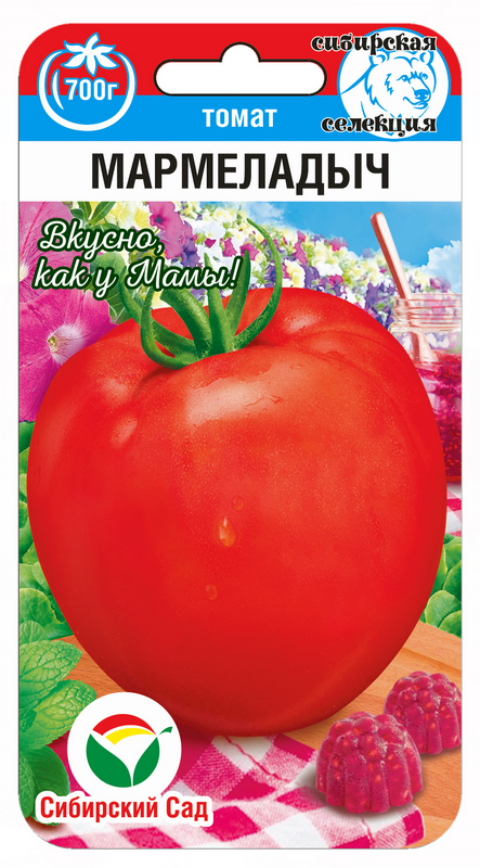 Сорт-богатырь, до 700 г, со сладкими сахаристыми плодами. У этого сорта в кисти одновременно наливается 8-10 крупных плодов сердцевидной формы, плотных, красных, 300-500 г. Среднеспелый, высокорослый (до 2 метров). Предназначен для теплиц, но может выращиваться в открытом грунте. Первая кисть закладывается над 7-8 листом, последующие через 3 листа. Устойчив к основным заболеваниям томатов, выдерживает непростые погодные условия Сибири. Мякоть плотная, сахаристая на изломе, прекрасных вкусовых качеств. Великолепен в любых салатах. Для употребления в свежем виде и на переработку на соки и пюре. Для ускорения формирования и укрупнения томатов на верхних плодовых кистях рекомендуется своевременный сбор первых плодов. Урожайность сорта до 6 кг с растения. При выращивании в теплице с температурой свыше 32° С требуется использовать препараты «Завязь», «Томатон» и т.д.