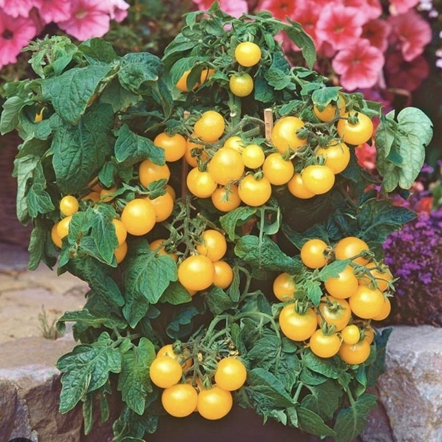 Скороспелый сорт, имеет длительный период плодоношения с начала июля до первых заморозков. Растение штамбовое, карликовое, компактное, супердетерминантного типа, высотой 25-30 см, с желтыми многочисленными небольшими плодами «на один укус», плоскоокругой и округлой формы, массой 20-25г. Плоды имеют плотную мякоть, несмотря на маленький размер, вкус очень сладкий, без кислинки. «Черри» можно использовать для приготовления салатов, а также в консервировании. Рекомендуется для выращивания в открытом грунте, для горшечной культуры. Особенности сорта: Сорт довольно неприхотлив, за ним могут ухаживать даже дети. Сорт не требует пасынкования. Растения выглядят очень декоративно особенно во время массового плодоношения. Благодаря своей декоративности сорт с большим успехом может использоваться в озеленении балконов и лоджий.