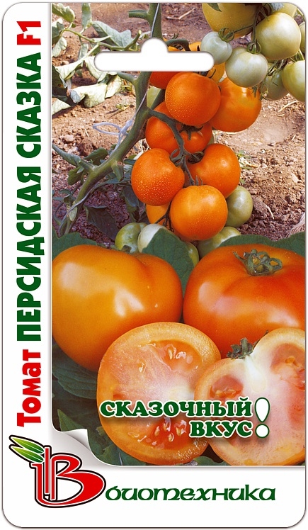 Гибрид нового поколения с потрясающе красивыми и вкусными плодами! Плоды содержат очень большое количество жизненно необходимого каротина. Прекрасная завязываемость плодов при неблагоприятных (особенно пасмурных и прохладных) условиях. Комплексная устойчивость к наиболее вредоносным грибковым и вирусным заболеваниям томата! Гибрид ранний, созревание плодов начинается через 104-107 дней после появления всходов. Растение детерминантного типа, очень коренастое, крепкое, хорошо облиственно. Лист простой, с крупными долями. Первое соцветие закладывается над 5-6 листом. Каждое последующее (что очень важно) через один лист. Соцветие простое, компактное, очень плотное, с 5-7 плодами. Плод округлый, плотный, массой 130-150 г. В технической спелости зеленого цвета, без пятна у плодоножки, в биологической – оранжевого, с персиковым румянцем. Плоды содержат 6,2% сухих веществ, 4,0% сахаров, 20,0 мг% аскорбиновой кислоты. Вкусовые качества очень высокие. Устойчив к вирусу табачной мозаики и альтернариозу. Гибрид предназначен для выращивания в открытом грунте и пленочных теплицах. Урожайность в пленочной теплице 10,0-11,7 кг/м2.