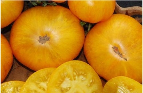 Американский сорт "Свиная отбивная" (Pork chop) Индетерминантный сорт, среднего срока созревания, для теплиц и открытого грунта на юге. Урожайный. Куст прочный, формировать в 1-2 стебля, подвязывать. Плод плоскоокруглый, крупный, ярко-жёлтый, не оранжевый, очень солнечно смотрится, плотный, мясистый. Вкус томатный сладкий, с нотками цитрусовых. Для потребления в свежем виде, отличные соки с мякотью и любые заготовки на зиму. Посев на рассаду в первой декаде марта.