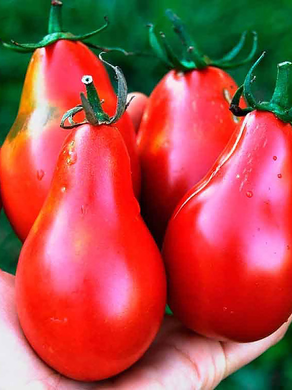 Раннеспелый урожайный сорт. Растение нештамбовое, детерминантное, стелющееся. Плод грушевидной формы, гладкий. Окраска незрелого плода зелёная с тёмно-зелёным пятном, зрелого - красная. Мякоть мясистая, плотная, приятного сладкого вкуса. Ценность сорта: выравненность плодов оригинальной формы, пригодность их для цельноплодного консервирования.