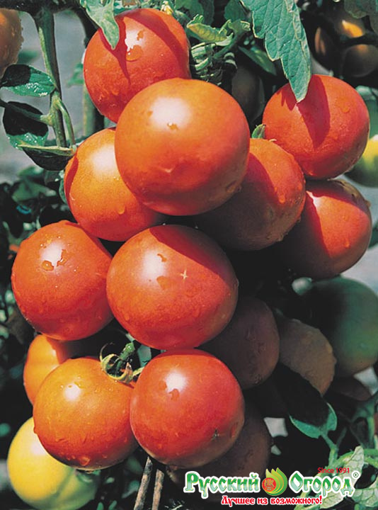 Знаменитый отечественный сорт с плодами идеальной формы – томат Яблонька России. Купить семена в розничной продаже непросто, ввиду их востребованности, но в «Русском Огороде» заказать их можно круглогодично. Растение позволяет экономить место в парнике или на огороде, так как характеризуется низкими кустами (до 80 см), высаживать которые можно довольно плотно, до 3-5 штук на квадратный метр. Форма помидор почти совершенная, круглая, цвет яркий, кожура плотная, размер небольшой – до 80 грамм. Это оптимальное решение для консервации, томаты хорошо помещаются в банки. Куст штамбовый, в подвязке и пасынковании не нуждается. Созревание раннее – всего 90 – 110 дней. Урожайность не менее 3 кг с одного растения.
