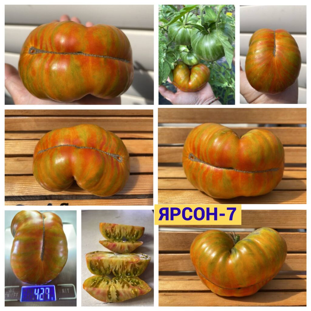 Томаты «Ярсон», благодаря своей очень сочной мякоти и насыщенному вкусу, часто используются для приготовления соусов, соков и других заготовок. Куст 1,4 м. в ОГ, широкий и раскидистый. Лист крепкий поникший. В кисти обычно 3-4 плода весом 350-450 гр. Урожай средний.