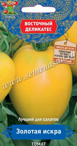 Среднеспелый, детерминантный сорт для выращивания в открытом грунте и пленочных теплицах. Период от всходов до начала плодоношения 105-110 дней. Растение высотой до 50 см, усыпано кистями по 3-5 плодов. Плоды овальной или яйцевидной формы, массой 120-150 г, ярко-желтого цвета. Мякоть нежная, сочная, замечательного вкуса. Рекомендуется для потребления в свежем виде.