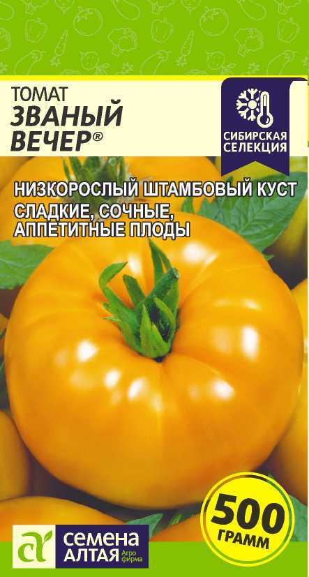Селекция Агрофирмы «Семена Алтая».Великолепный штамбовый сорт, который будет радовать Вас своим стабильно высоким урожаем! Сорт среднеспелый, детерминантный. Плоды округлой и плоскоокруглой формы, крупные, насыщено желтого цвета, массой 125 г, отдельные плоды достигают 500 г. Очень вкусные, прекрасно подходят для домашней кулинарии. В марте семена высевают на слегка утрамбованный грунт, мульчируют торфом или почвенным слоем 1,0 см, поливают теплой водой через ситечко, накрывают пленкой и ставят в теплое (около 25°С) место. После появления всходов пленку снимают, рассаду размещают в светлом месте. В течение 5-7 суток температуру поддерживают на уровне 15-16°С, затем повышают до 20-22°С. В фазе 1-2 настоящих листьев рассаду пикируют. 60-65-дневную рассаду в фазе 6-7 настоящих листьев и хотя бы одной цветочной кисти высаживают в защищенный или открытый грунт.