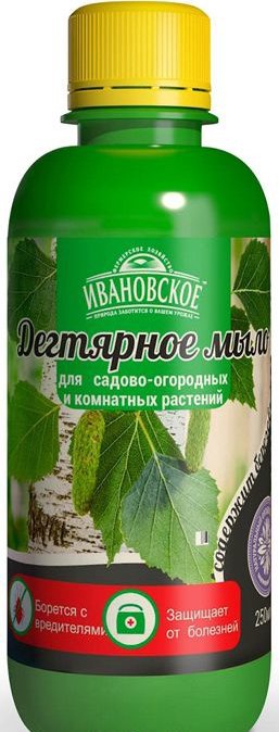 Дегтярное мыло применяется для садово-огородных и комнатных растений. Отпугивает вредителей, защищает от болезней. Натуральное и эффективное средство. Применение: Дегтярное мыло разводят водой. Полученным раствором опрыскивают растения. Обработку рекомендуется проводить в утренние или вечерние часы в сухую безветренную погоду. Для борьбы с тлёй, трипсами, паутинным клещём, слюнявкой-пенницей и другими сосущими: 20–40 мл препарата развести в 1 л воды. Полученным составом производить опрыскивание 1–3 раза в период вегетации. Для борьбы с щитовкой: 10–20 мл средства развести в 1 л воды. Опрыскивать 1–3 раза в течение двух недель. Для борьбы с бурой пятнистостью, мучнистой росой, ржавчиной и фитофторозом: 10–20 мл препарата развести в 1 л воды. Опрыскивать до цветения растений.