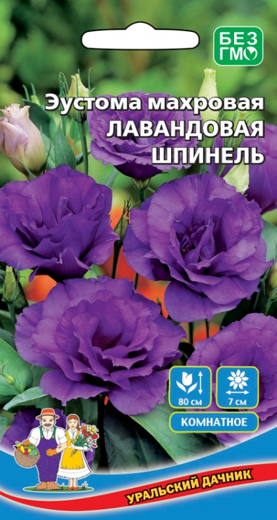 Необыкновенно красивое многолетнее растение, выращиваемое как однолетнее или оранжерейное и используемое преимущественно для получения роскошной срезки. Куст прямостоячий, с высокими прочными цветоносами, на каждом из которых образуется огромное количество бутонов. Большие, пышные цветки лавандовой окраски, по форме очень напоминающие розочки, создают атмосферу праздника и подарят массу положительных эмоций. Великолепное комнатное украшение. Букет из эустомы прекрасно стоит в вазе, постепенно раскрывая новые бутоны. Отличается очень обильным цветением.