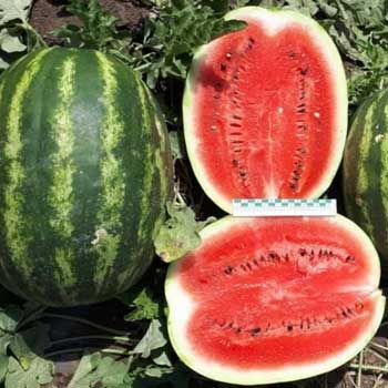- Из мелких семян получаются крупные плоды: арбуз вырастает внушительных размеров, средним весом около 8 килограмм. Кожура арбуза тонкая, потому не рекомендуется перевозить в фурах перезревшие плоды весом более 9 килограмм.
