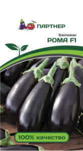 Баклажан Рома среднеранний гибрид. От высадки 45-дневной рассады до первого сбора 65-70 дней. Плоды эллипсовидной формы очень красивые, вкусные, плотные. Обладают отличной лёжкостью. Окраска тёмно-фиолетовая, массой 200-250 гр. Плоды медленно формируют семена, что повышает вкусовые качества гибрида. Подходит для выращивания как в открытом грунте, так и в теплицах. Урожайность Рома F1 свыше 10 кг/м2.