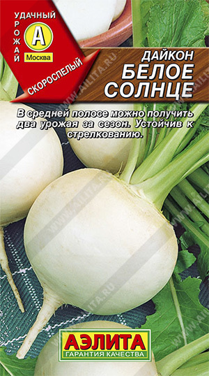 Сорт скороспелый, корнеплоды созревают на 45-50 день от всходов. Рекомендуется для открытого грунта и пленочных теплиц. Стабильная устойчивость сорта к стрелкованию позволяет получить в условиях средней полосы 2 урожая за сезон. Корнеплод округлый, гладкий, средней массой 200-250 г. Отдельные экземпляры могут достигать 350-400 г. Мякоть белоснежная, плотная, сочная. Вкус освежающий, сладковато-острый, без горького привкуса. Урожайность товарных корнеплодов 5-6 кг/м2. Рекомендуется для свежего потребления в разнообразных салатах и гарнирах.