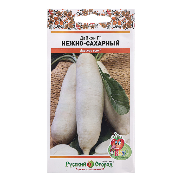 Позднеспелый гибрид для предзимнего сбора урожая и длительного хранения. От всходов до уборки урожая: 80 дней. Корнеплод красивый, белый, ровной цилиндрической формы, длиной до 33 см. Мякоть белоснежная, хрустящая и сочная, сладковатого, не острого вкуса. На 1/3 выступает над землей, имеет светло-зелёные «плечики».