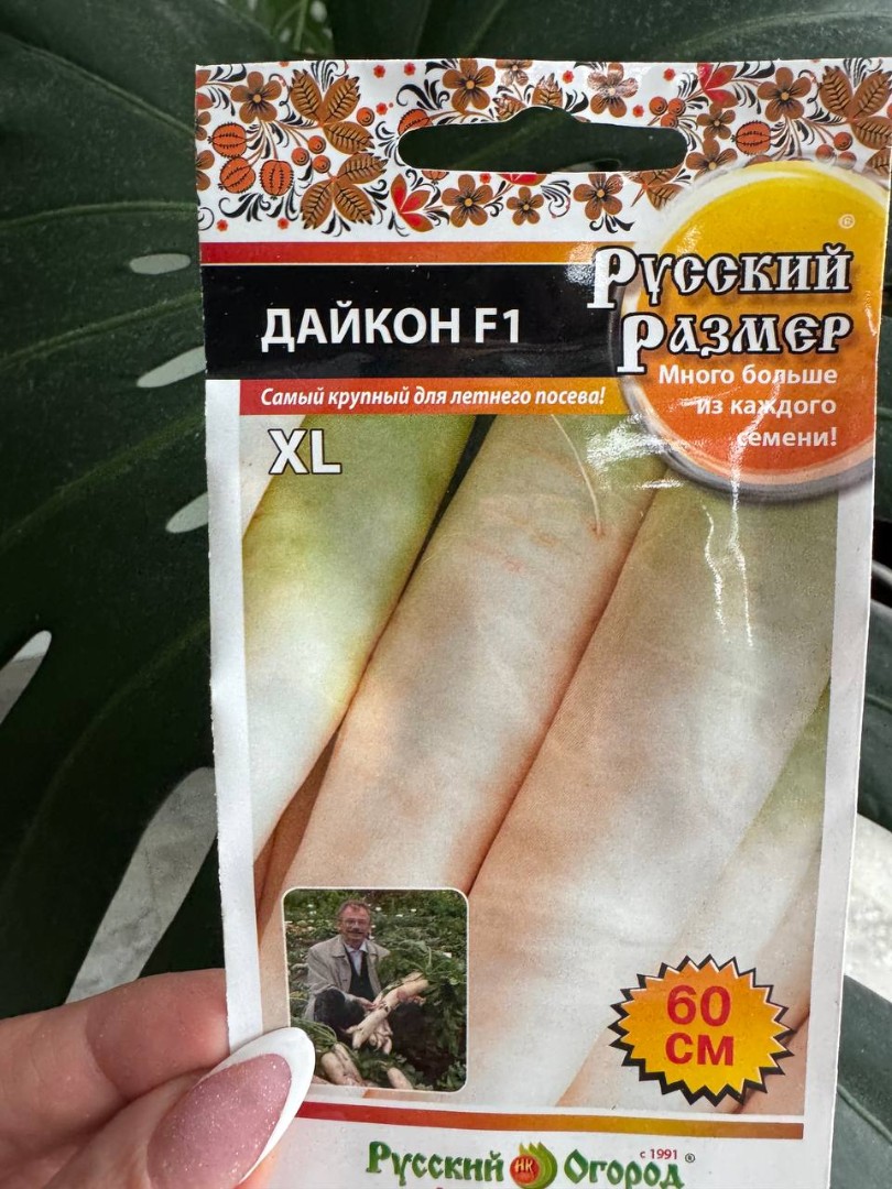 Дайкон Русский Размер F1 - самый раннеспелый и крупноплодный гибрид для летнего посева. Быстро набирает вес и легко выращивается! Готов к уборке уже через 45 дней от всходов, и это отличный результат даже для посадки в северных регионах нашей страны! При посеве в конце июля, к октябрю достигает 60 см в длину и 12 см в диаметре. Отменные габариты, ведь одного корнеплода хватит практически на большой семейный обед! Мякоть отличного вкуса, сохраняет сочность при хранении.