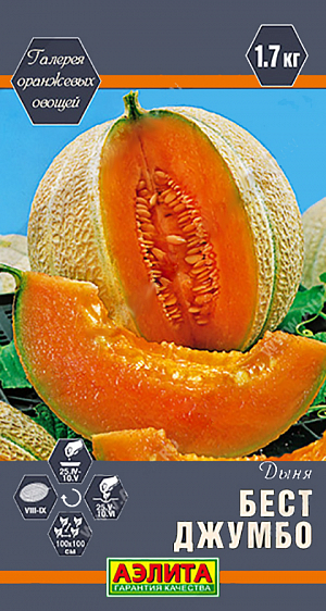 Восхитительно сладкий и ароматный сорт с оранжевой мякотью. Среднеспелый, урожай начинают убирать на 90-100 день после всходов. Плоды массой 1,5-1,7 кг, с тонкой кожицей. Мякоть сочная, тающая, с медовым послевкусием. Отличается повышенным содержанием бета-каротина, что и придает ей такой яркий цвет. Это вкусное и полезное летнее лакомство для детей и взрослых. Также из этой дыни можно приготовить цукаты, варенье и повидло. Сорт устойчив к комплексу заболеваний, хорошо транспортируется.