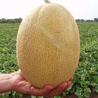 Раннеспелый, высокоурожайный гибрид дыни, тип Ананас. Потенциальный лидер в раннем сегменте. Растение мощное с отличным потенциалом завязывания плодов, листовой аппарат хорошо прикрывает плоды от солнечных ожогов. Рекомендуется для выращивания в открытом грунте. В течение вегетационного периода растение формирует по 4-5 плодов. Плоды привлекательной овальной формы, однородные, выровненные, с крупной ярко выраженной сеткой на кожице, средний вес 2,0-2,5 кг. Благодаря плотной сетке отличная лёжкость и транспортабельность. Мякоть белого цвета, плотная с приятным ароматом и сладким вкусом. Семенная камера очень маленькая. В стрессовых условиях способен формировать высокий урожай. Обладает устойчивостью к фузариозному увяданию (раса 0,1,2), сухой гнили, толерантен к ложной мучнистой росе.