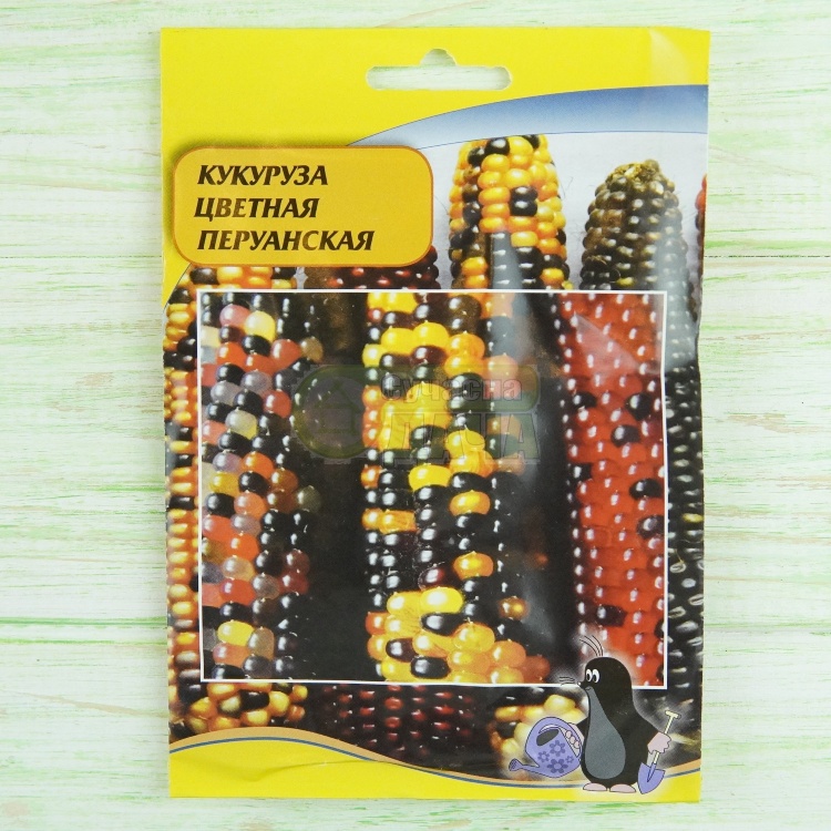 Уникальный сорт перуанской кукурузы. Дает початки с разнообразными полупрозрачными зёрнами. Каждый початок цветной кукурузы уникален и вы не найдете ни одного похожего ни по цвету, ни по размеру. Кукуруза этого сорта является кремнистым сортом. Из цветной (радужной) кукурузы получается совершенно особенный по вкусовым качествам попкорн, а так же отличная кукурузная крупа или мука. Главное преимущество продуктов этого сорта - это особенный крахмал, который НЕ содержит моносахаридов. Как следствие - медленное усвоение в организме, не вызывает ожирения, а так же не вызывает повышения глюкозы при диабете.