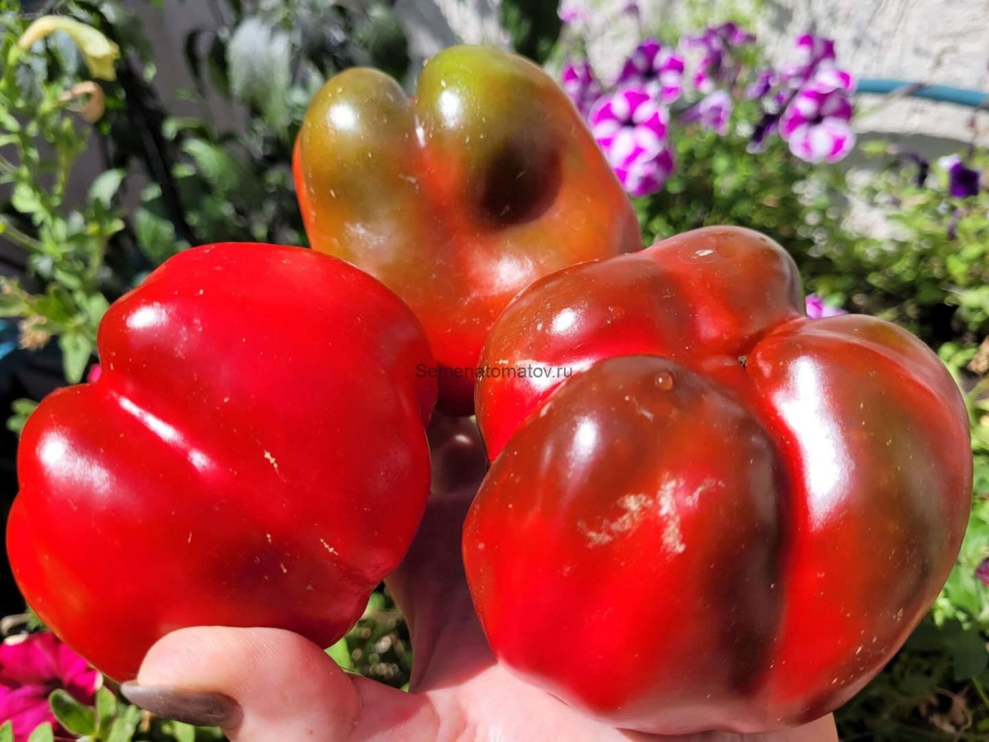 Cavaliere di Bronzo Коллекционный семейный сорт из Италии. Раннеспелый сорт, период от массовых всходов до плодоношения составляет 120 дней. Формирует прочный штамбовый куст высотой 80-100 см. Плод крупный, кубовидной формы, пониклый, в технической спелости – красно-зеленый, в биологической – оранжево-красно- малиновый. Средняя масса плода 200 г, толщина стенок 7-8 мм. Товарная урожайность – 7,0-7,5 кг/м2. Плоды отличного вкуса, с насыщенным ароматом