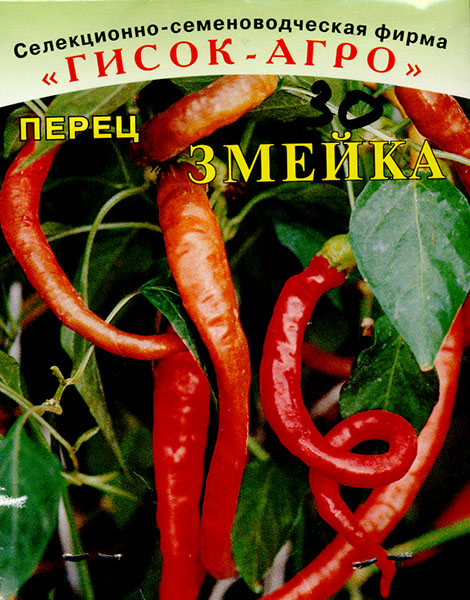 Оригинальный среднеранний сорт, с плодами похожими на змейку, имеющими прекрасный декоративный эффект, предназначен для употребления в свежем виде и цельноплодного консервирования. Растение высотой 0,7-0,9 м. Плоды хоботовидные, пониклые, длиной 21-25 см, шириной 1,5-2,0 см. Окраска плодов в технической спелости зеленовато - белая, в биологической - красная, масса плода 18-20 г. Особенности сорта: Сорт отличается высокой завязываемостью плодов и продолжительностью плодоношения.