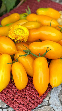 Суперурожайный сорт, имеет в кисти до 30 штук лимонно-желтых ламповидных плодов. Они упругие, мясистые, мякоть зернистая, нежная. Высокие вкусовые качества с выраженным характерным ароматом. Великолепно ведут себя на гриле и при запекании в духовке. Сорт среднеранний, индетерминантный, устойчивый к заболеваниям. Формируем в 2–3 стебля.