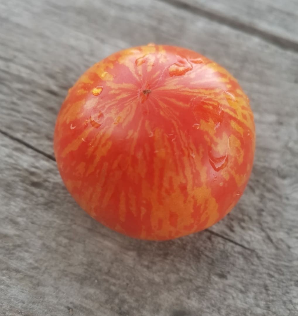 Плоды округло-сливовидной формы красного цвета с яркими оранжевыми полосками и деликатным носиком, массой 80-120 гр., сладкие, очень вкусные.