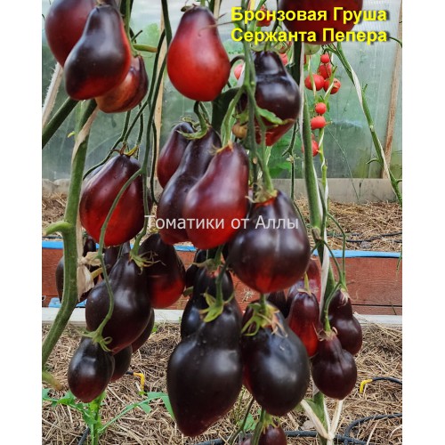 Индет, среднерослый, среднеспелый. Куст стройный, с тонким регулярным листом. Очень урожайный, необходима хорошая подвязка к опоре. Плоды грушевидные, бонзово-красные, с антоцианом на плечиках, массой 100-200 г. Мясистые, с маслянистой сладковатой красной мякотью, ароматные и вкусные, без пустот.