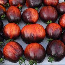 Помидоры с красивыми темно-фиолетовыми и красными полосками начинают созревать через 70-75 дней после всходов. Преимущество вида – длительный срок хранения. Овощи после созревания оставляют в прохладном темном месте. В таком виде они могут лежать до 2 месяцев. Помидоры «Gargamel» употребляются в свежем виде, их используют для приготовления салатов, гарниров, закусок, консервирования, вяления.