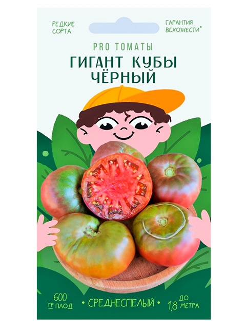 Томаты сорта Гигант Кубы чёрный - выглядят очень солидно и основательно! Плоды плоскоокруглые, со слабой ребристостью и очень необычного цвета. Окраска у спелых плодов темная, с преобладанием фиолетового цвета. Внутри "кроваво-красная" мякоть, очень сочная, насыщенная клетчаткой, сладкая, средней степени плотности. Подходят для потребления свежими и изготовления соково-соусной продукции. Растения боятся жары и засухи, но это, пожалуй, их единственный недостаток. Хорошо устойчив к болезням и вирусам. Хранятся и транспортируются хорошо. Можно собрать до 5 кг с 1 куста.