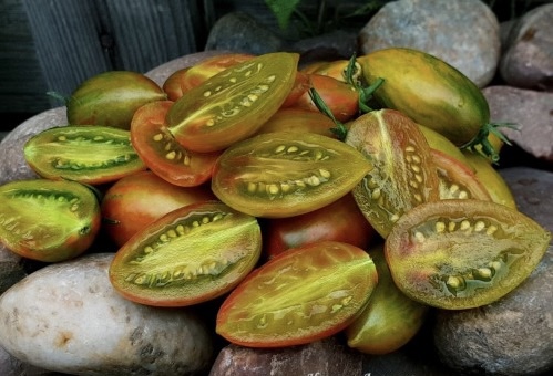 Очень новый сорт, полученный в результате скрещивания Wild Tiger и Danube. Плоды зелено-бронзового цвета с красными разводами и штрихами от 20 до 30 грамм. Плотная, сочная, невероятно сладкая мякоть с очень хорошим вкусом. Высокорослый среднеспелый.
