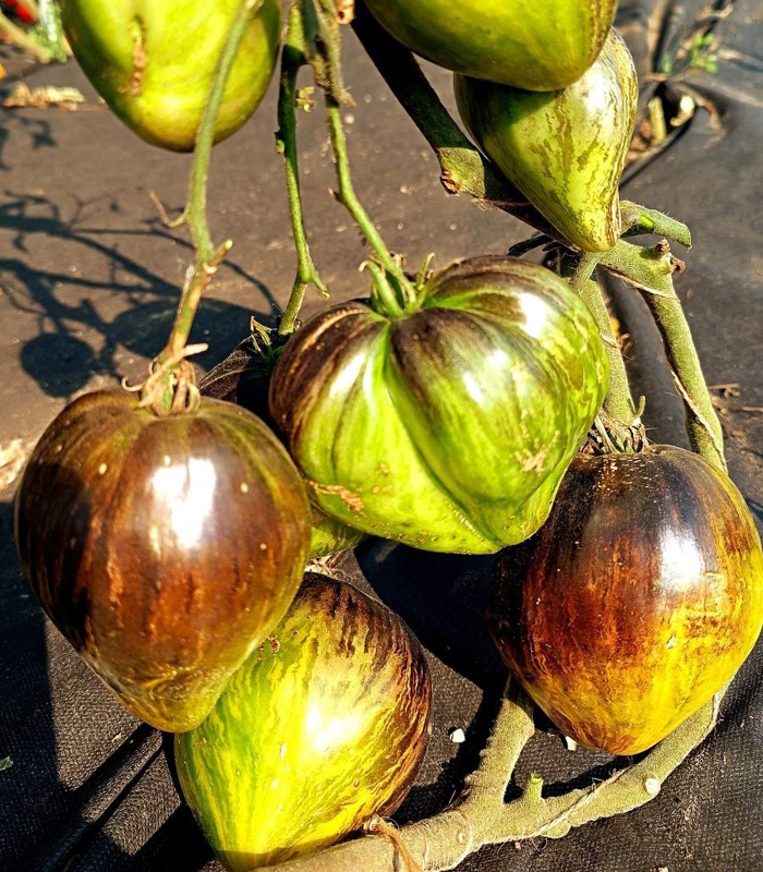 Индетерминантный, средне-ранний, куст аккуратный, лиановидный. Плоды сердцевидной формы с удлиненным носиком, изумрудно-пастельной окраски с извилистыми полосками и анто, массой от 180 до 300 г. На разрезе розовый галстук. Семенные камеры мелкие с незначительным количеством семян. Вкус отличный, сладкий, с сильным томатным ароматом. Урожай высокий. Селекция Софии Сааковой.
