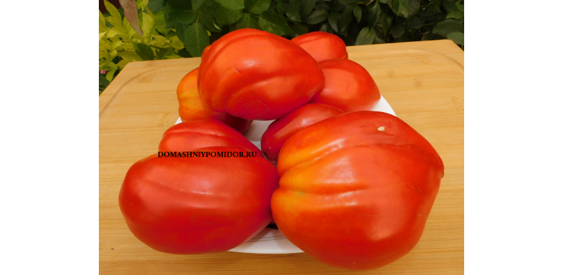Среднеспелый, инд. сорт, высота куста более двух метров. Плоды в форме удлинённо, приплюснутого к носику сердца, вкусные, сладкие, плотные, мясистые, малосемянные, массой до 500 гр. Урожайный сорт!