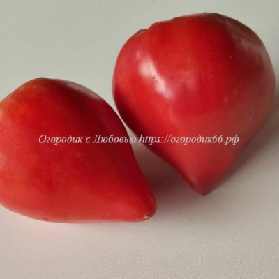 Плоды в виде широких сердец, весом до 400 грамм, к моменту созревания снаружи становятся практически красными с небольшими желтыми пятнами. А вот мякоть остается насыщенно–желтого цвета с красными вкраплениями и разводами. Вкус потрясающе сладкий, очень ароматный, захватывающий. Урожайность на самом высоком уровне.