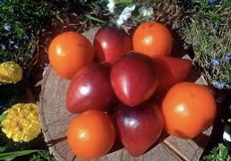 Экзотический сорт томата селекции Джейсона Хайнса. Куст тонкий, изящный, а урожай зашкаливает! Спелые плоды — загляденье!!! Томаты оранжево-жёлто-красно-малиновые!