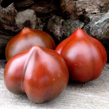 Куст высокий, мощный с красивым темно-зеленым листом. Здоровое растение до поздней осени. Плоды коричнево-красные, с темно-зелеными плечиками и полосками, более выраженными во второй половине сезона. Плодоносит до поздней осени, томаты хорошо дозариваются и лежат после сбора. Плоды многокамерные с сахаристой мякотью, вкус сладковатый, минимум кислоты. Шкурка довольно плотная. Сорт мощный, требователен к хорошему питанию, иначе качество плодов будет хуже. Не стоит злоупотреблять удалением листьев.