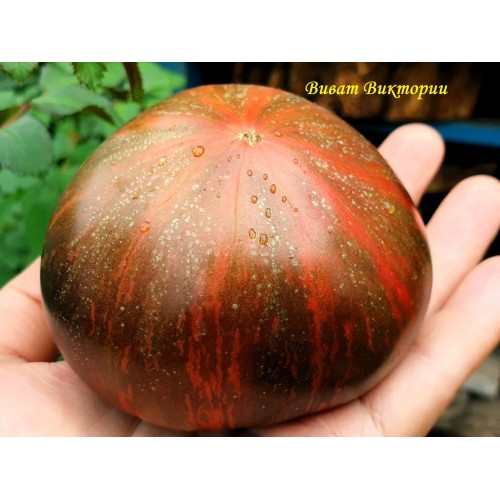 Селекция Софии Сааковой. Отклонение от кросса «Салют Виктории». На нескольких растениях обнаружены плоды плоско-округлой формы, массой 250-300 грамм. Красота неописуемая! Мякоть внутри сочная, мармеладная, с фруктово-пряными нотками во вкусе. Энергичные, сильные растения с высокой устойчивостью к заболеваниям и нестабильным погодным условиям. Выдерживают формировку в 2-3 стебля. Высота растений в теплице до 1,7 м.