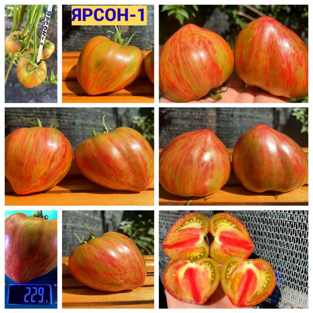 Индет, среднерослый, среднего срока созревания. Куст крепкий, среднеоблиственный, с крупным регулярным листом. Плоды выровненные в кистях , крупные, плоскоокруглые, массой 350-600 г. Очень красивые многоцветные, с редкими полосками снаружи и великолепные в нарезке. Мякоть многоцветная, сочная, сладкая, с пряным помидорным ароматом.
