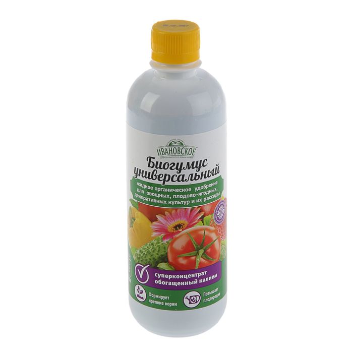 Обогащённое калием концентрированное органическое удобрение предназначено для получения сильных корнеплодов, плодовых и ягодных культур, оздоровления цветов. Наибольший результат показывает на грядках с томатами, перцами, баклажанами и другими видами овощей. Средство экономично и, по отзывам садоводов, эффективно. Благодаря составу корневая система образует многочисленные переплетения, которые существенно снижают заболеваемость сеянцев после переноса на постоянное место.Воздействие препарата на взрослые растения проявляется в их здоровом внешнем виде, мощных стволах и насыщенных влагой листьях. Правильная дозировка и график подкормок способствуют образованию больших и богатых полезными веществами плодов или максимально ярких цветов. ХарактеристикиАзот: не менее 4 кг/т. Калий: не менее 3 кг/т. Фосфор: не менее 3 кг/т. Содержание гуминовых веществ: 1,6 %.Микроэлементы в составе: железо, медь, кальций, магний, молибден, кобальт, бром, кремний. ПрименениеЗамачивание семян: три колпачка (15 мл) на литр воды. Помидоры замачивать 3 суток.Капусту — 2 суток. Огурцы — 1 сутки.Картофель — 12 часов перед посадкой, либо окунуть клубни на 5–10 минут в раствор (150 мл средства на 10 л воды). Рассада: при высадке окунуть корешок в раствор (15 мл средства на 1 л воды) на 3–5 минут.Полив рассады: 1 раз в неделю, 10 мл средства на 5 л воды.