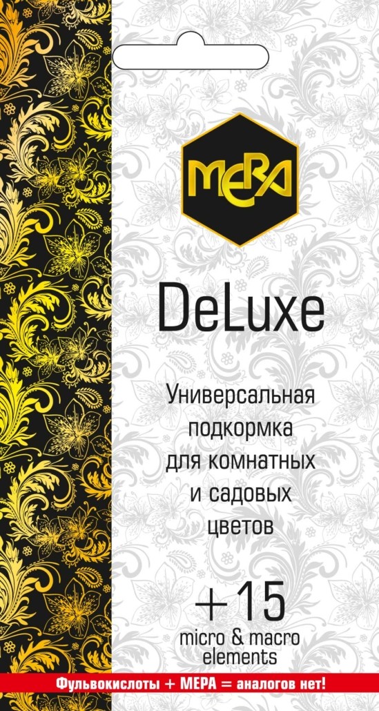 MERA DeLuxe – органоминеральное удобрение, в составе которого не только гуминовые кислоты и специальная МЕРА макро- и микроэлементов, но и поистине волшебные ФУЛЬВОКИСЛОТЫ (статья о фульвокислотах) и ,главное, всё это создано на основе растительного сырья благодаря органическому синтезу в специальном реакторе!