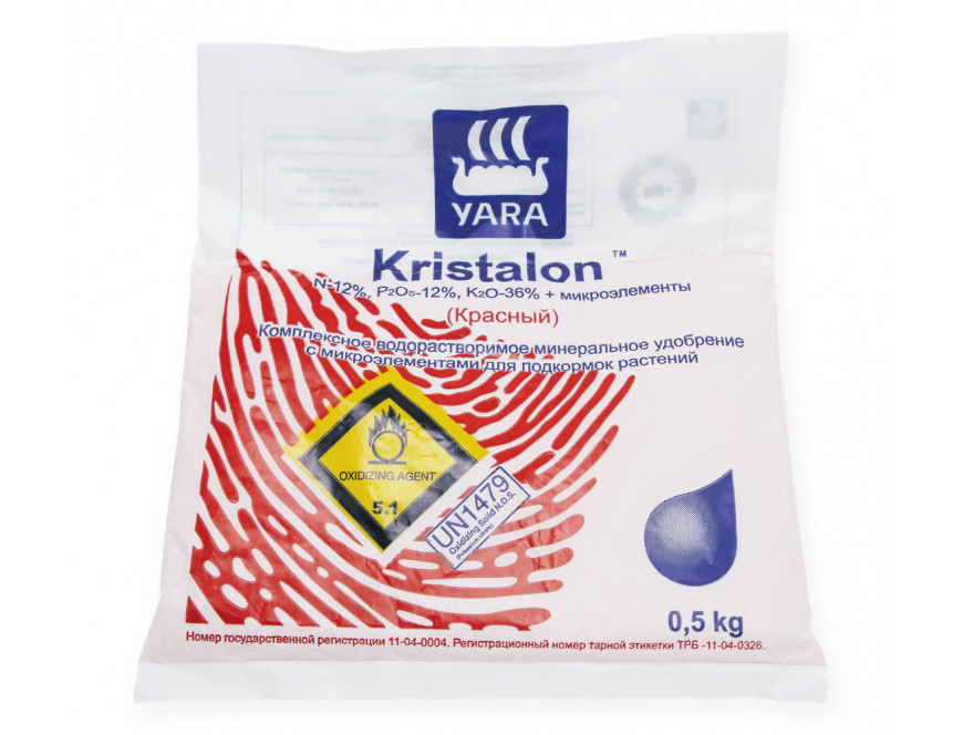 Отличительная особенность красного Кристалона как удобрения – это повышенное содержание калия. Соотношение NPK составляет 12:12:36. Также можно отметить пониженное количество серы и магния. Поэтому применять его можно для растений, испытывающих недостаток в калии.