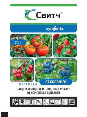 Свитч действует на все виды и подвиды грибов рода Botrytis (серая гниль) и на большинство возбудителей вторичных гнилей.